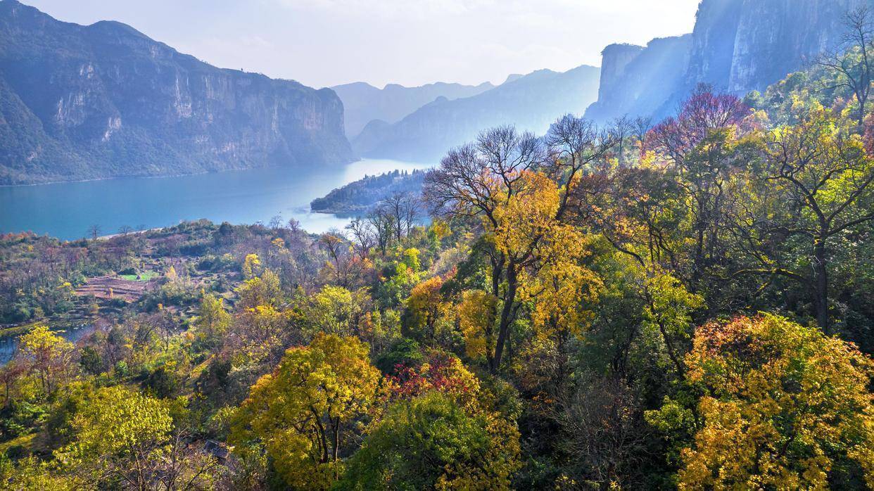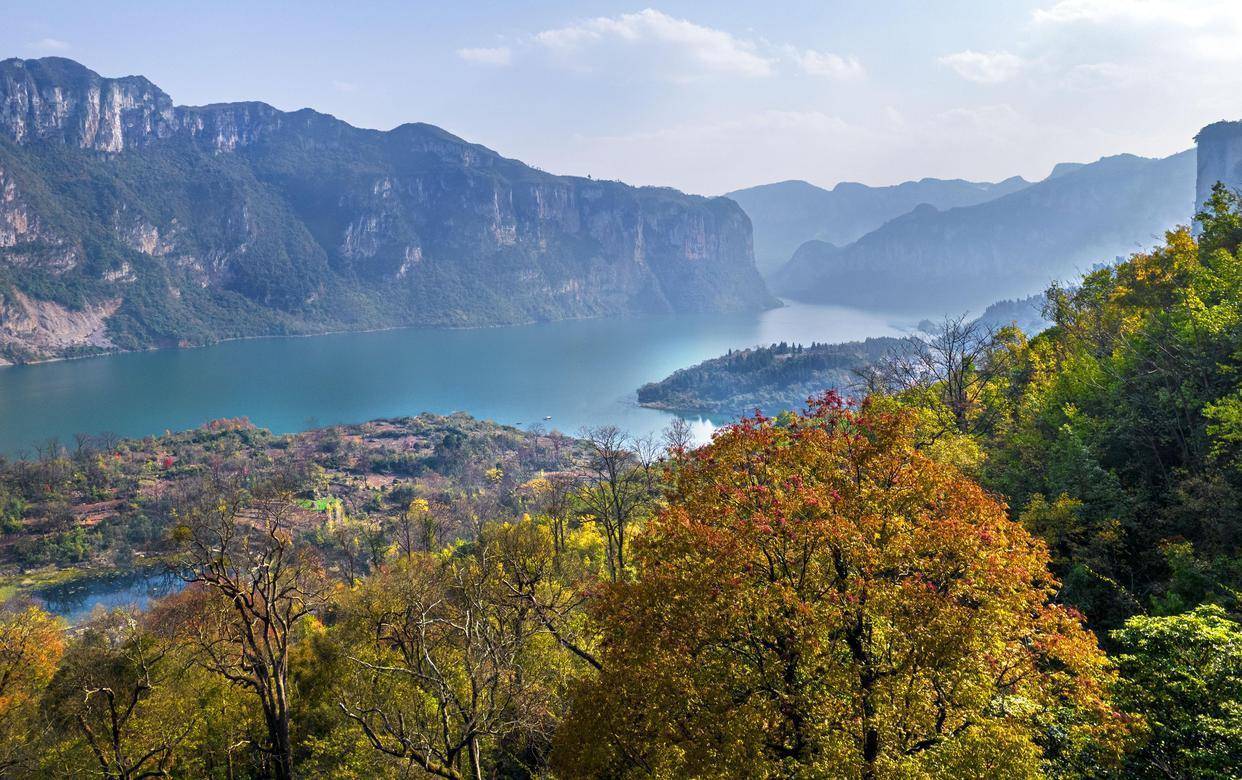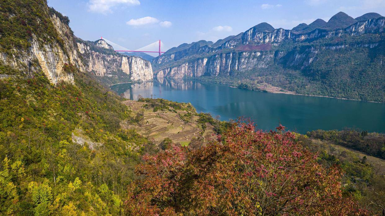 渐入深冬兴旺国际投资,乌江上游的毕节市黔西市境内的六冲河段两岸层林尽染,古树红叶与山川、碧水交相辉映,构成一幅美丽画卷。