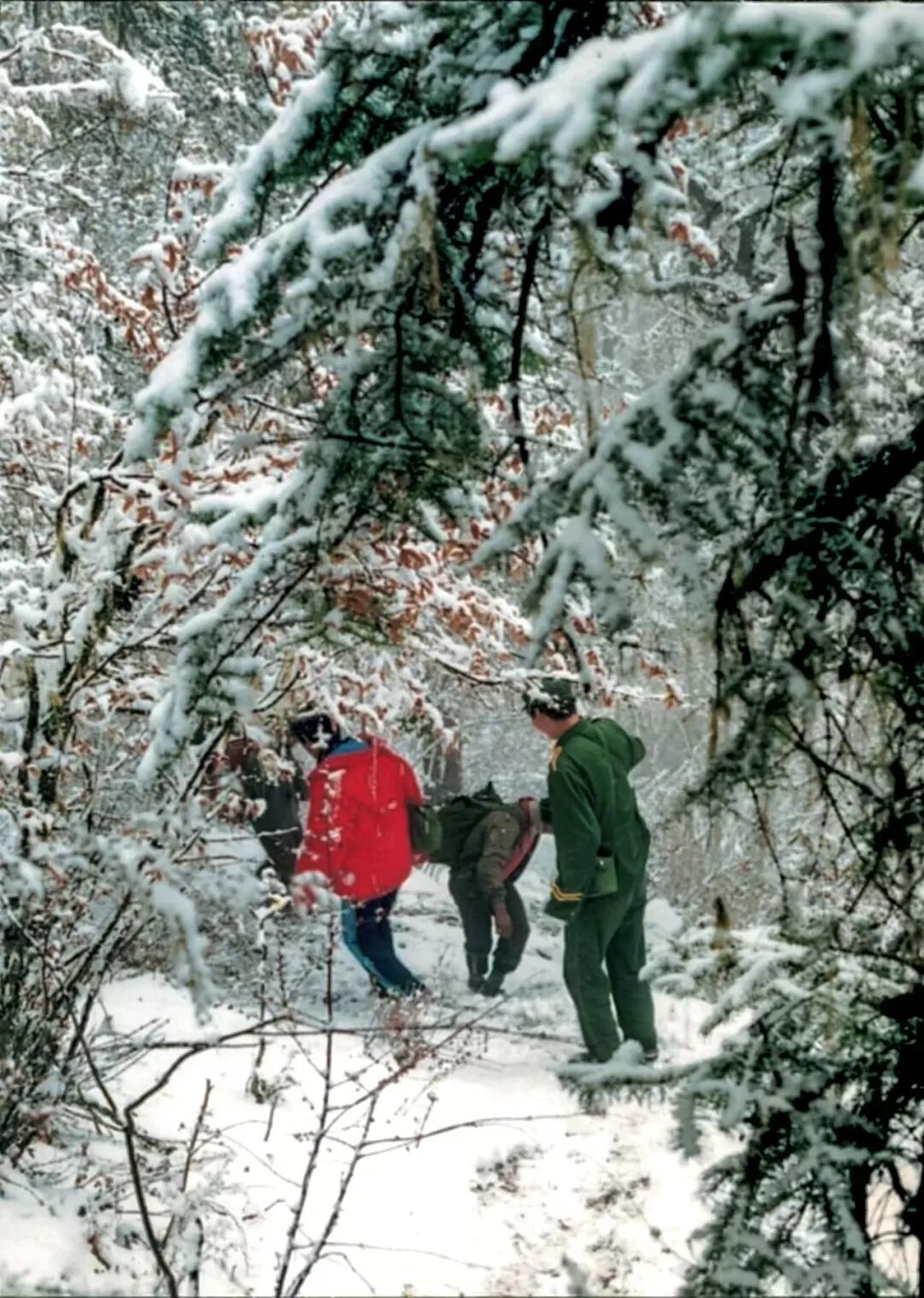 大约四点半,只听“呯”的一声枪响,我们回头一看,宋元清和提着冲锋枪的武警李剑北、木呷下来了。老宋拄着一根木棍,一䠄一䠄的,颜柯笑他走路“像孕妇一样”。看来他这次也是吃苦不少。林志远打开另一瓶啤酒,我拿出饼干,让宋、李二人享用。我又同老宋边走边聊。他们这次在叶巴滩“复仇”惊心动魄的画面,在我面前徐徐展开。
